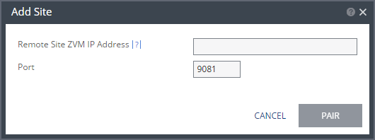 Remote Site ZVM IP Address – IP address or fully qualified DNS host name of the remote site Zerto Virtual Manager to pair to.