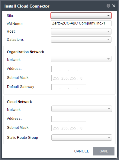 Static Route Group: The name of the group for which static routes are defined to the Zerto Virtual Manager network and VRA network. If a static route group is not specified, it is assumed that the Zerto Virtual Manager and VRAs are on the cloud network.