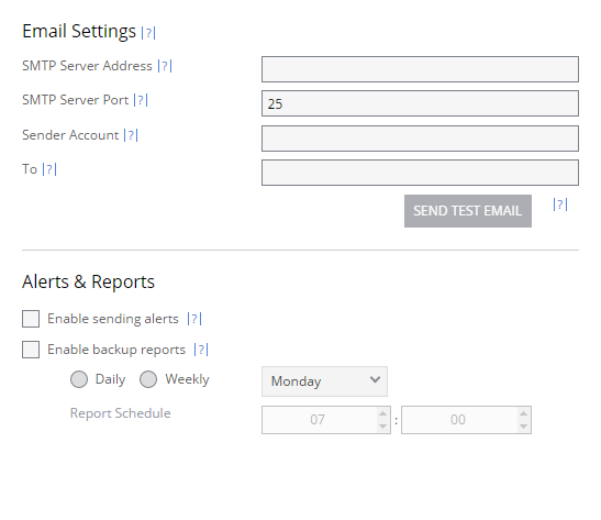 You can configure when to send alerts and backup reports.