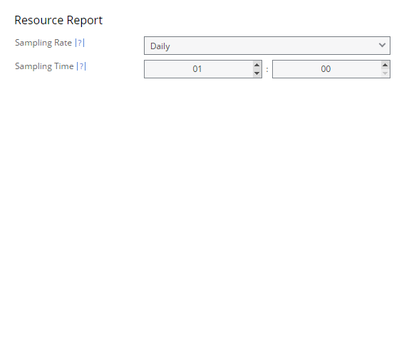 Specify when you want to take resource samples to identify resource usage, either daily at a specific hour and minute or hourly at a specific minute within each hour.