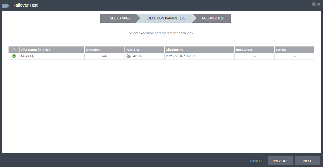 You can test a single VPG or multiple VPGs to make sure that if an actual failover is needed, the failover will perform as expected.