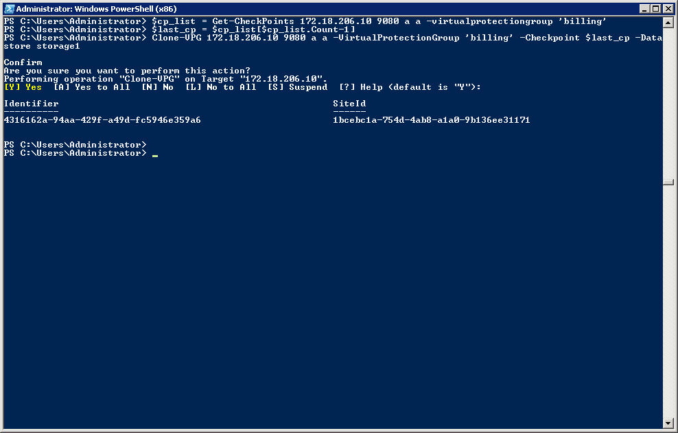 PS C:\Users\Administrators> Clone-VPG 172.18.206.10 9080 a a