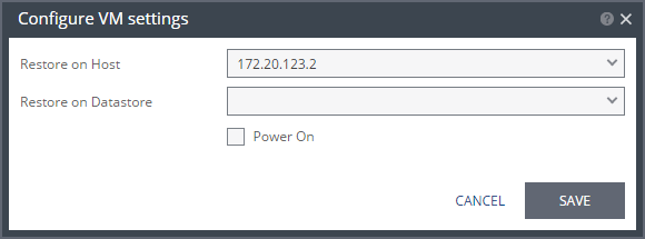 Restore on Host – The IP address of the host where you want the virtual machine restored.