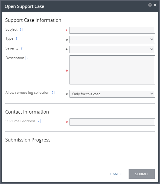 Open Support Ticket Dialog