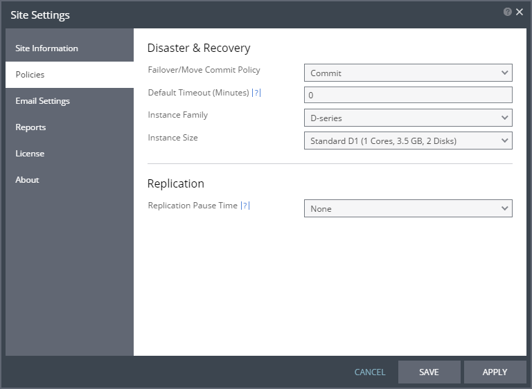 Failover/Move Commit Policy – The commit policy to use during a failover or move operation. The value set here is the default for all failover or move operations from this point on but can be changed when defining a failover or move operation. The following options are available: