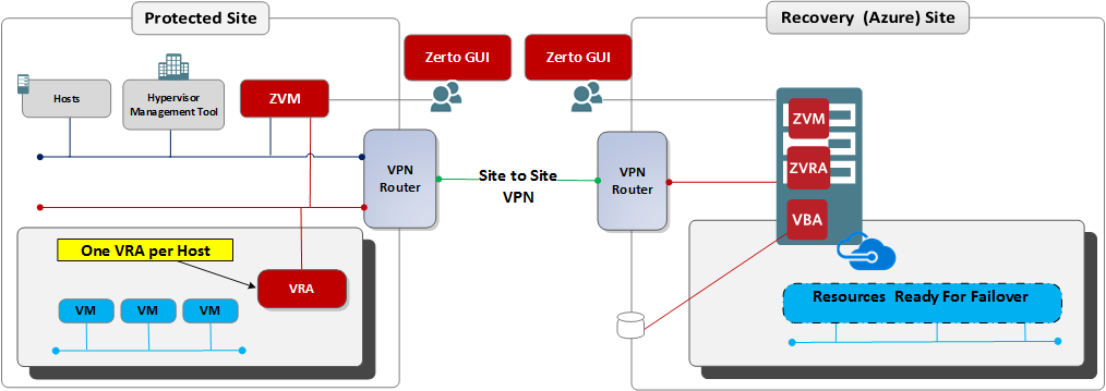 Zerto Virtual Replication can be installed at multiple sites, all of which can be paired to Azure. For information about the ports used by Zerto Virtual Replication, see
