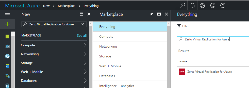 In order to install Zerto Virtual Replication, you must first deploy Zerto Cloud Appliance VM. You will find Zerto Cloud Appliance in the Azure marketplace portal.