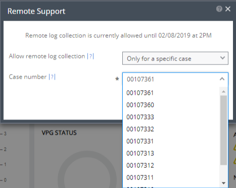 Only for a specific case - You will be prompted to select the Case number from the drop-down list. The list contains all the active cases opened under the account that the Zerto Virtual Manager is registered under.