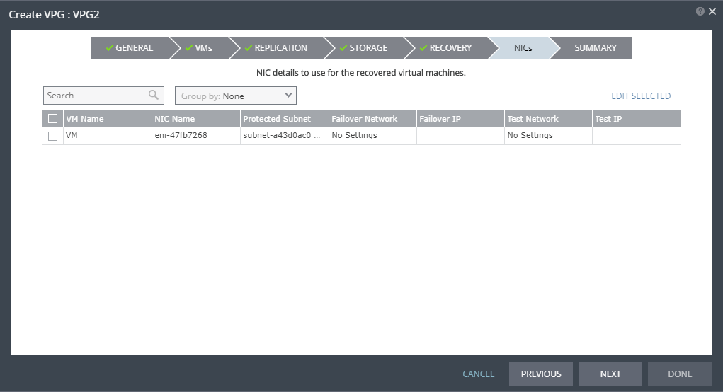 Changing the VPG recovery volume from thin-provisioned to thick-provisioned or vice versa, results in volume initial synchronization. |