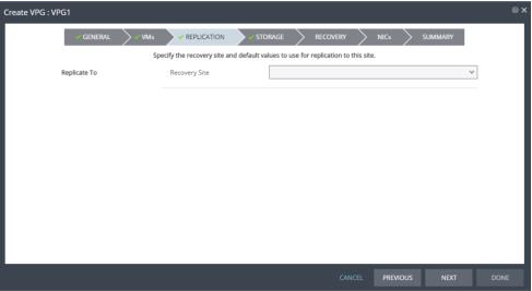 Storage | The default cluster, resource pool or host in the recovery site that handles the replicated data. If the site is defined in Zerto Cloud Manager, only a resource pool can be specified and the resource pool must also have been specified as a resource in Zerto Cloud Manager. | |
