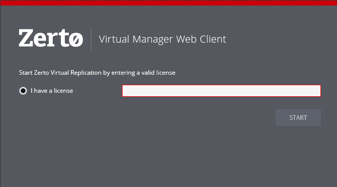 When you first access the Zerto User Interface, you must register your use of Zerto Virtual Replication by entering the ZCA license supplied by Zerto.