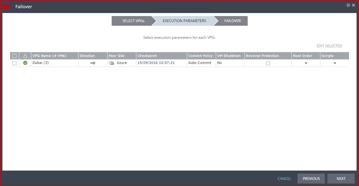 Note: Selecting specific VMs in a VPG to failover is not supported when replicating from a vCD site.