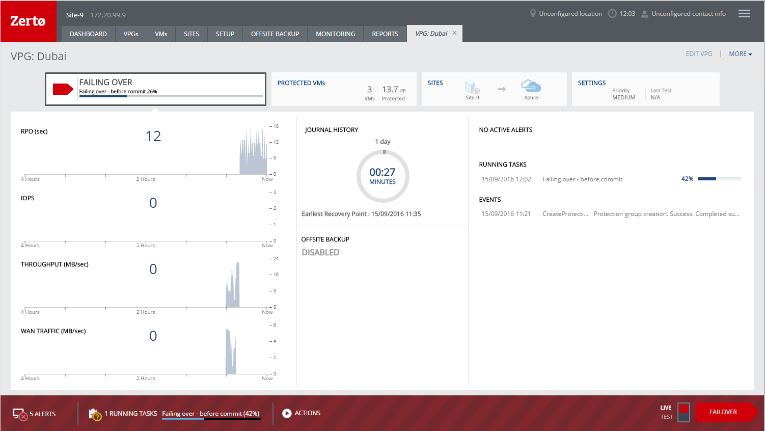 You can initiate a failover, whereby the virtual machines in the virtual protection group (VPG) or specific virtual machines in a virtual protection group (VPG) are replicated to a set checkpoint in Azure.