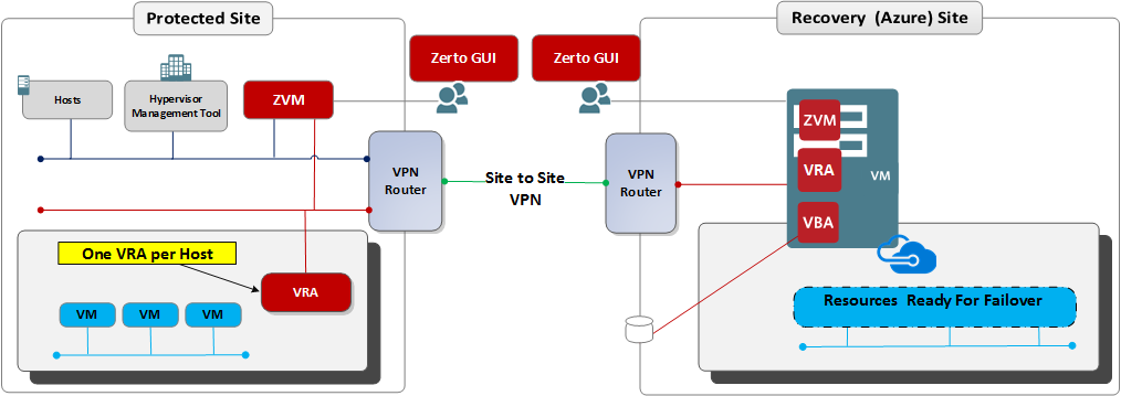 In on-premise environments, Zerto Virtual Replication is installed with virtual machines to be protected and recovered.