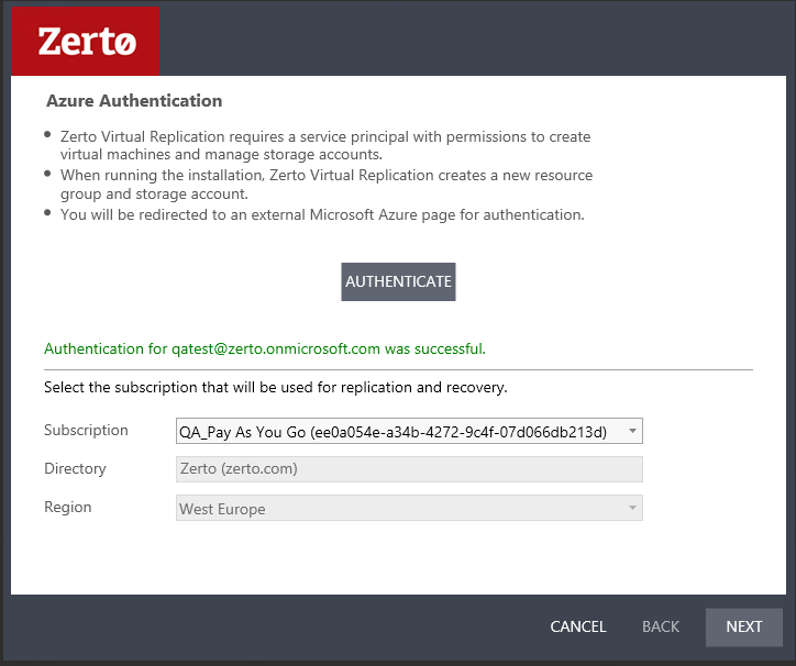 Zerto automatically detects the region in which the ZCA is installed.