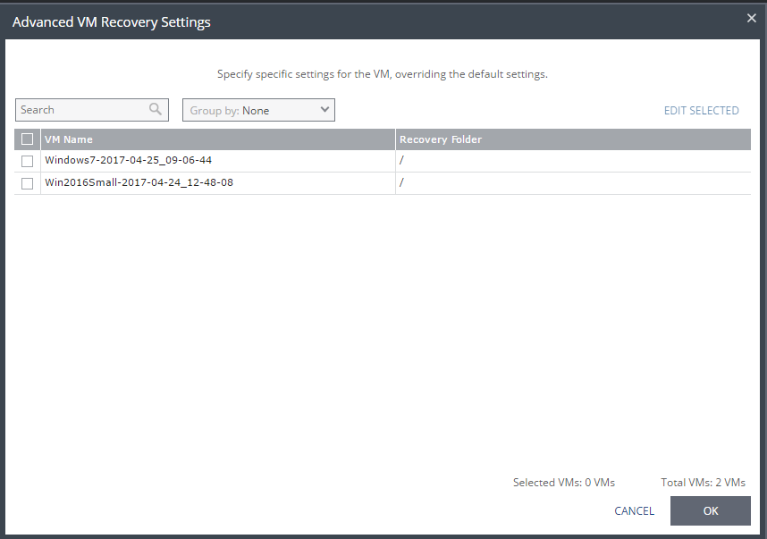 29. In the Advanced VM Recovery Settings dialog, click OK.