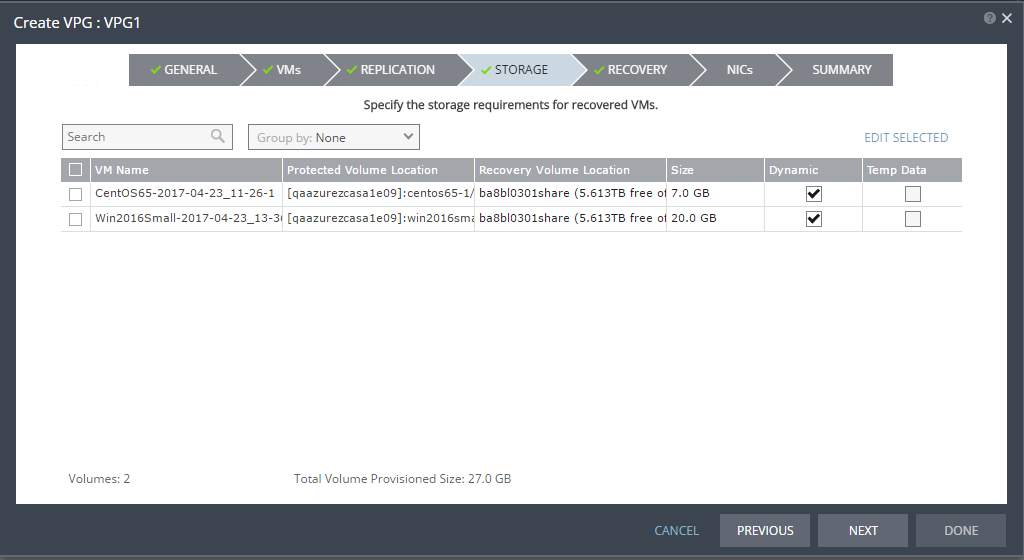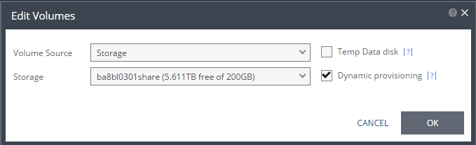 If the recovery volumes are thin-provisioned or not. | If the source disk is thin provisioned, the default for the recovery volume is that it is also thin provisioned. |