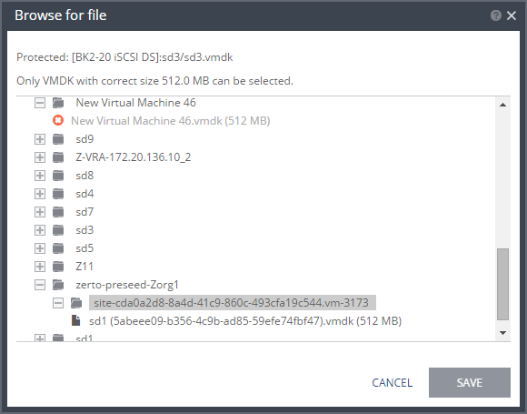 The Zerto Virtual Manager User Interface : Browse for File Dialog