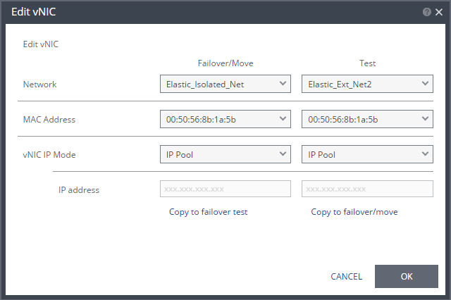 MAC Address – Whether the Media Access Control address (MAC address) used on the protected site should be replicated on the recovery site. The default is to use the same MAC address on both sites.