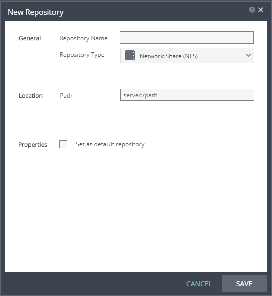 4. In the Properties area, you can Set as default repository. This will use the repository as the default when defining the retention policy in a VPG.
