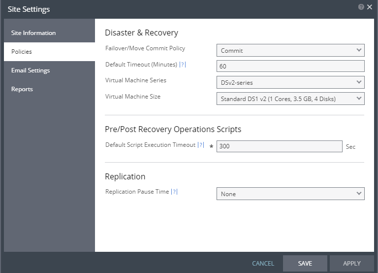 Failover/Move Commit Policy – The commit policy to use during a failover or move operation. The value set here is the default for all failover or move operations from this point on but can be changed when defining a failover or move operation. The following options are available: