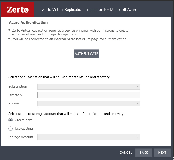 BEST PRACTICE: It is recommended to use a separate storage account per ZCA. Although Azure ZCAs can use the same storage account for protecting VMs, the system does not recognize if the two ZCAs are protecting the same VM, even if they’re not paired to each other.