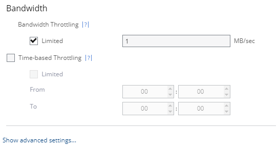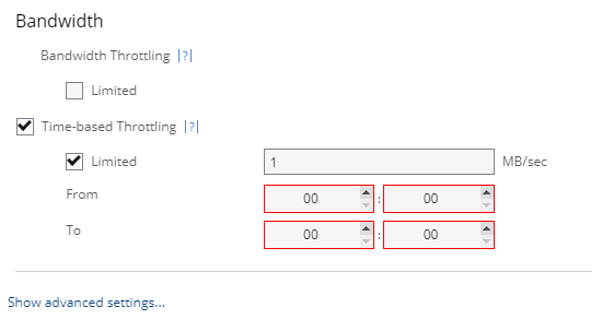 Define this to throttle the bandwidth during specific times. For example, during the daily peak transaction period you can change the bandwidth throttling, to override the general setting.
