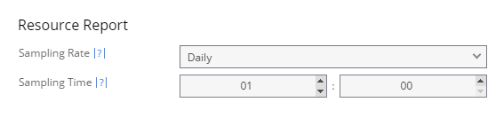 Specify when you want to take resource samples to identify resource usage, either daily at a specific hour and minute or hourly at a specific minute within each hour.