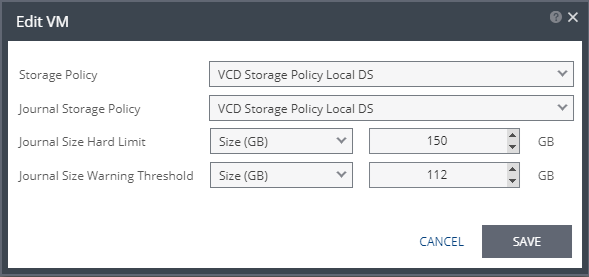 16. To edit information for a single VM, click the field Storage Policy, or Journal Storage Policy, and update the information.