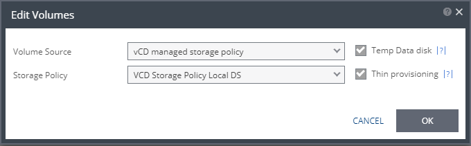 ■ Storage Policy per volume is supported only in vCD supported versions, and when the selected Orgvdc is not configured for fast provisioning.