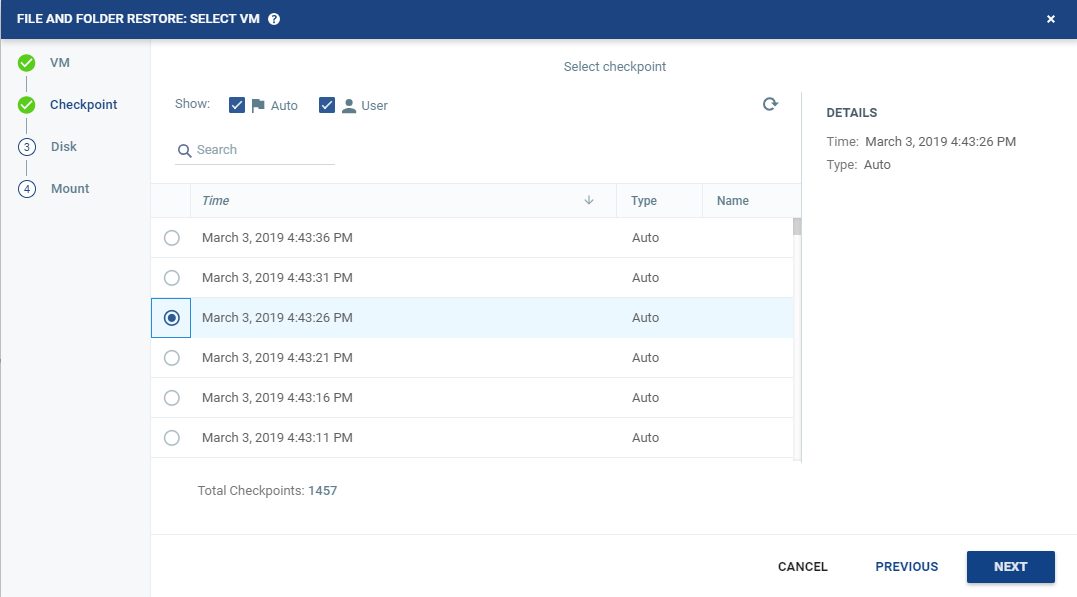 Auto: Checkpoints generated by the Zerto Virtual Manager are displayed.