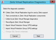 2. Select the Local Zerto Virtual Manager diagnostics option and click Next.