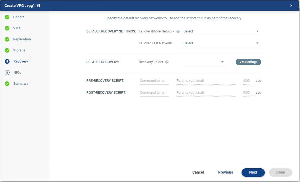 Changing the VPG recovery volume from thin-provisioned to thick-provisioned or vice versa, results in volume initial synchronization. |