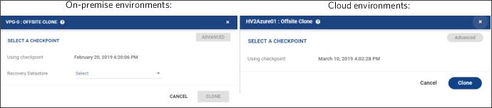 ■ SELECT A CHECKPOINT: Opens the Checkpoints Dialog to select the checkpoint to use to make the clone.