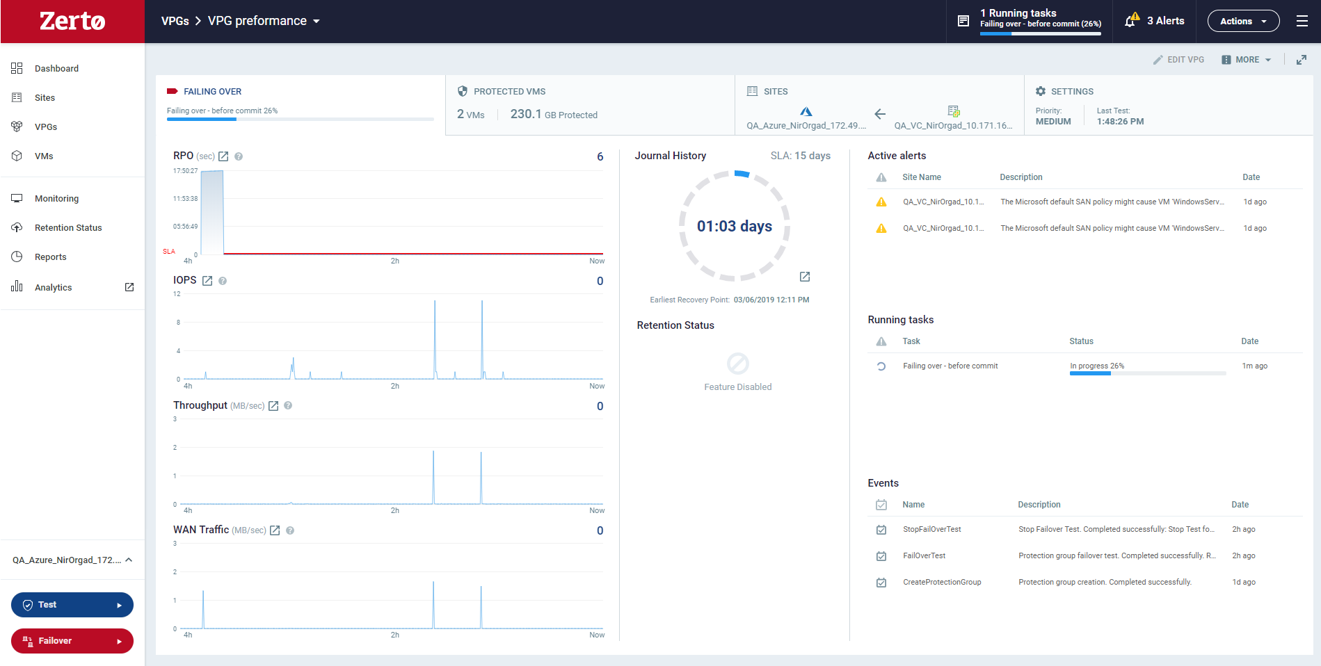 Note: Any VPGs that are in the process of being synchronized, cannot be recovered, unless the synchronization is a bitmap synchronization.