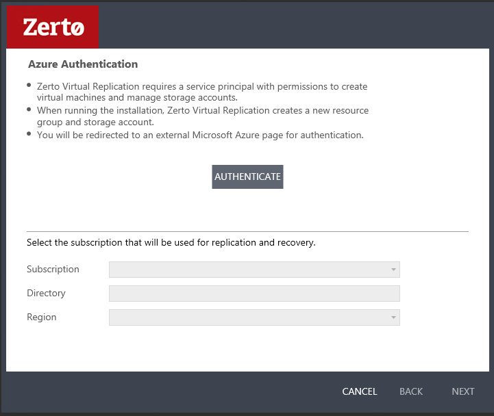 Zerto automatically detects the region in which the ZCA is installed.