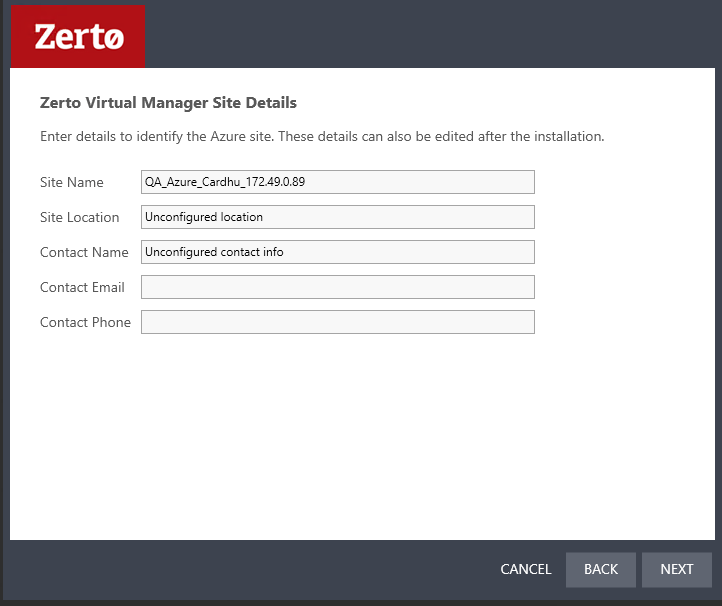 Site Name: | (Optional) A name to identify the site. This name is displayed in the Zerto User Interface |