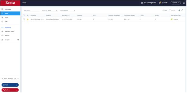Red: The Zerto Virtual Manager for the site is not running correctly, for example, because communication with the site is down.