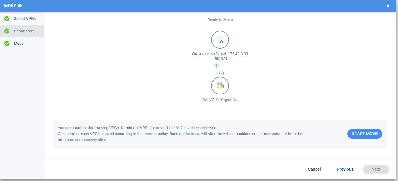 9. Review the Commit Policy summary, and either click Change Settings, or click START MOVE to start the move.