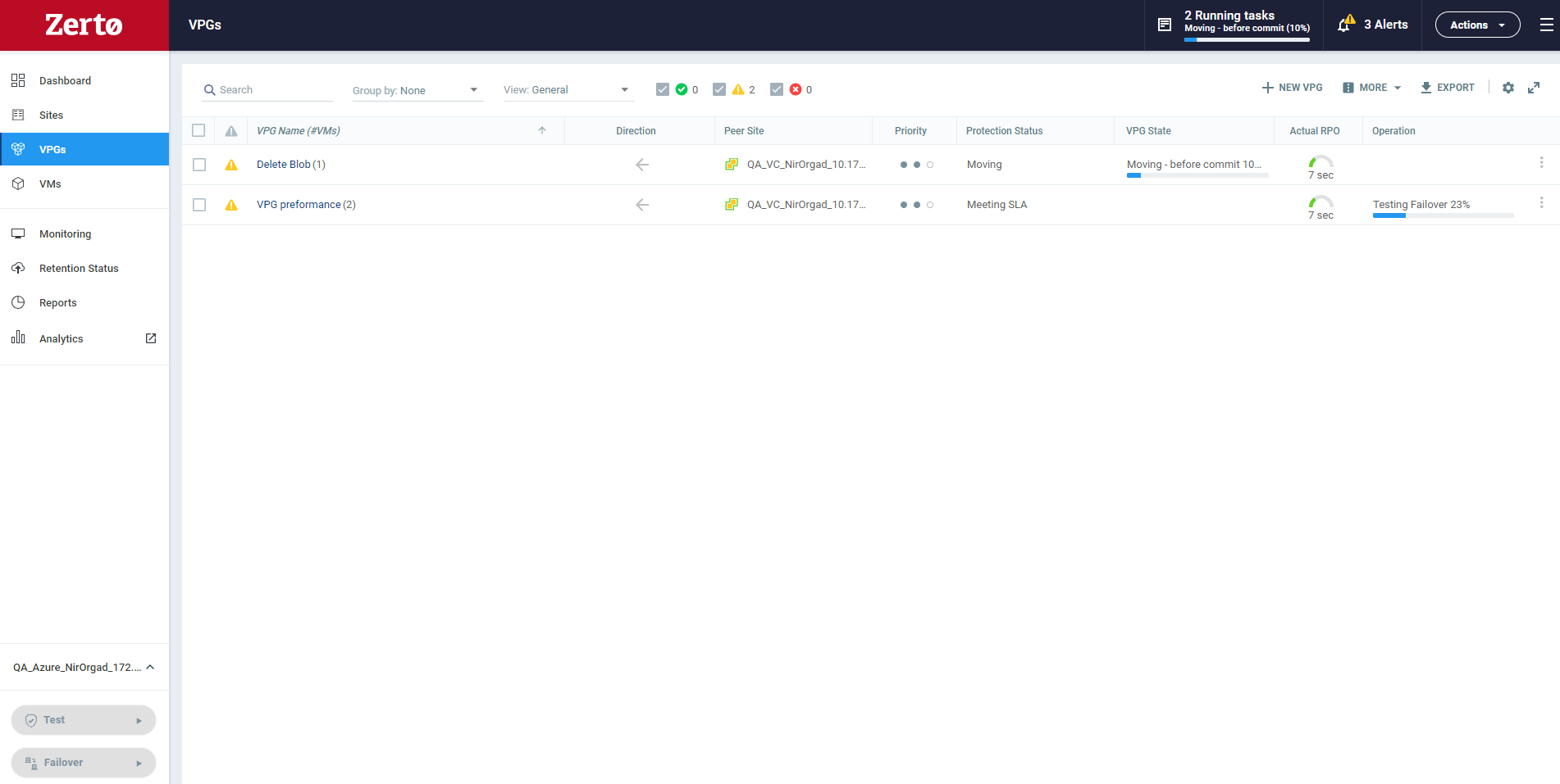 1. In the Zerto User Interface select ACTIONS > MOVE VPG.