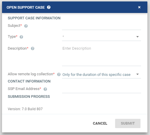 ■ SSP Email Address: A valid email address registered with Zerto, with permission to open cases.