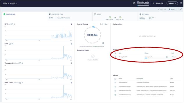 The cloning starts and the status is displayed in the VPG details tab.
