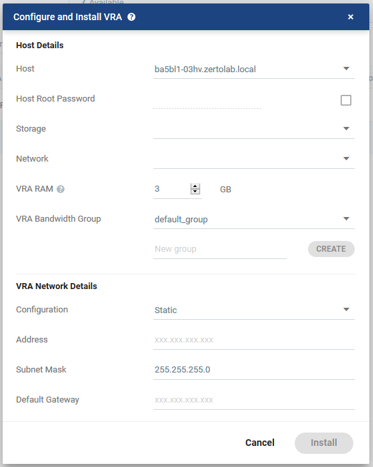 To install a Zerto Virtual Replication Appliance (VRA) on a host: