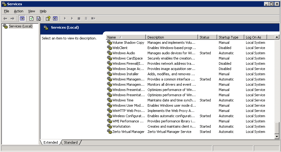 If you have problems accessing the Zerto User Interface, check under Windows Services, on the machine where Zerto is installed, that the Zerto Virtual ManagerWindows service is started.