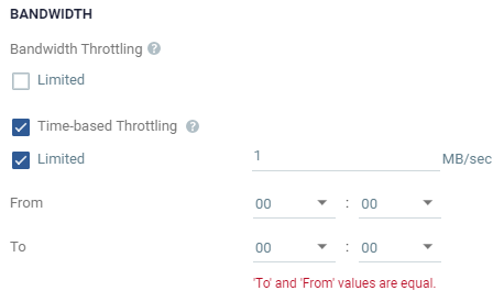 Define this to throttle the bandwidth during specific times. For example, during the daily peak transaction period you can change the bandwidth throttling, to override the general setting.