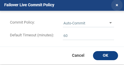13. Review the Commit Policy summary, and either click Change Settings, or click START FAILOVER to start the failover.