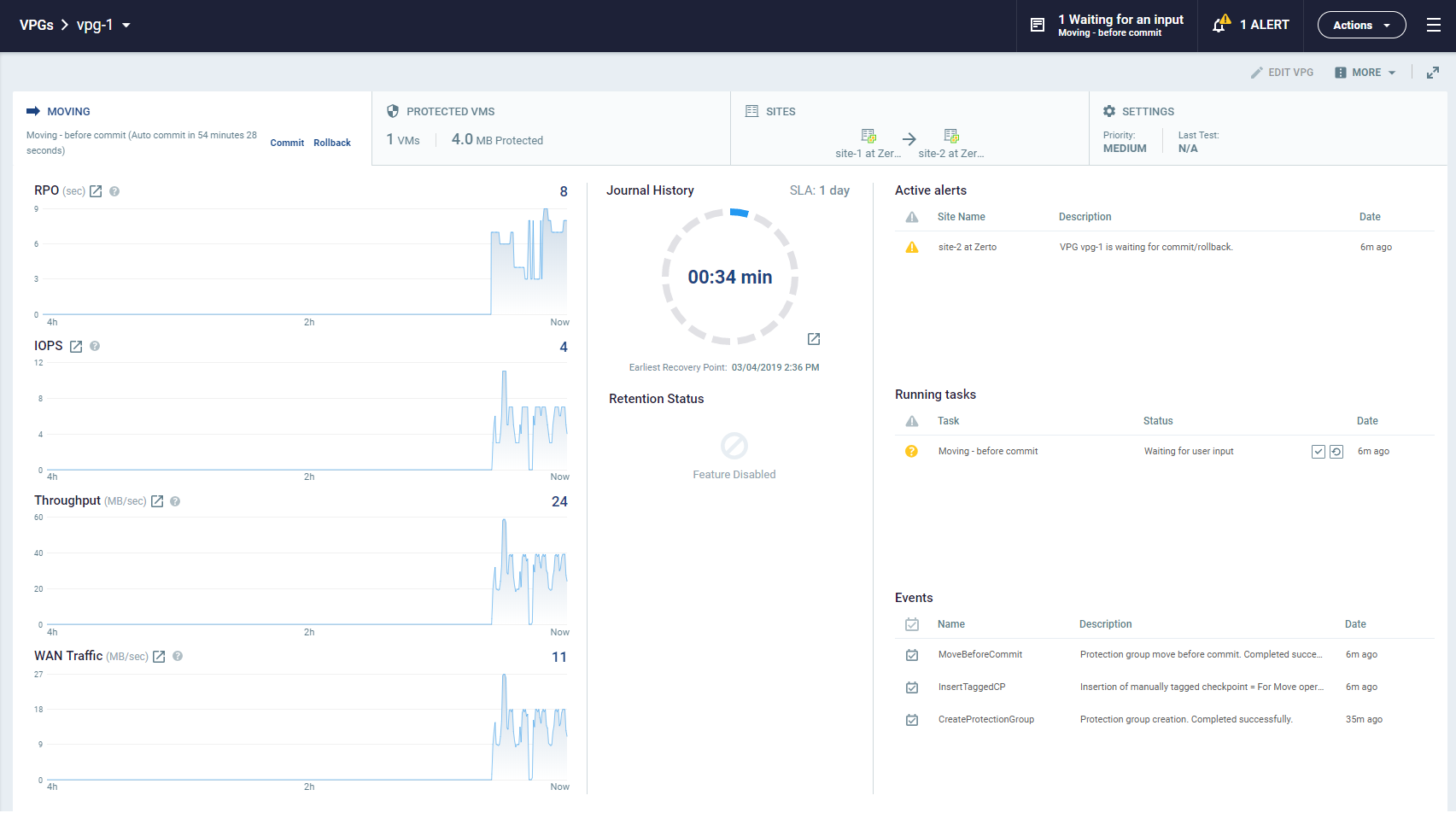 1. In the Zerto User Interface select ACTIONS > MOVE VPG.