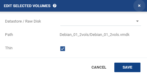 11. To specify the volume information for each virtual machine, from the Actions column, click Volumes.