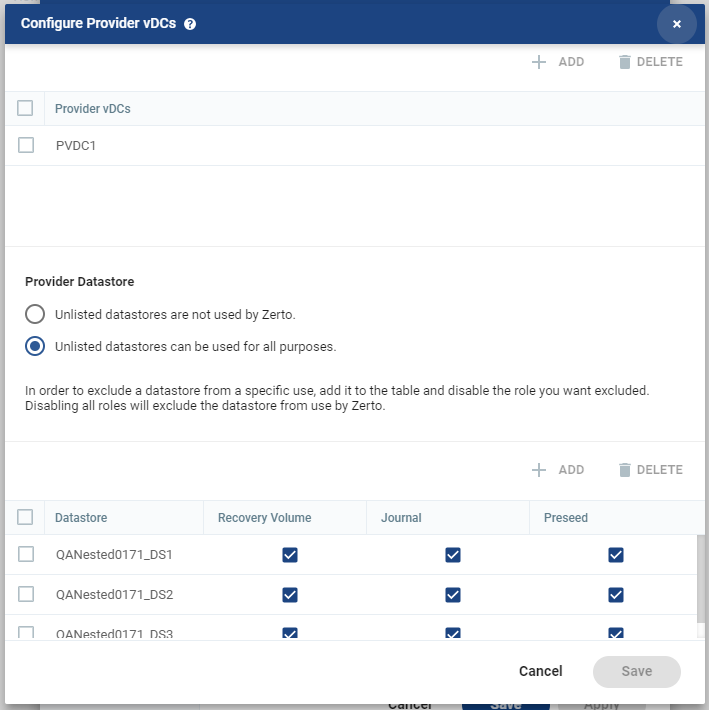 Used by Zerto Cloud Service Providers to define provider vDCs, and to define which datastores can be used by Zerto, to which purpose.