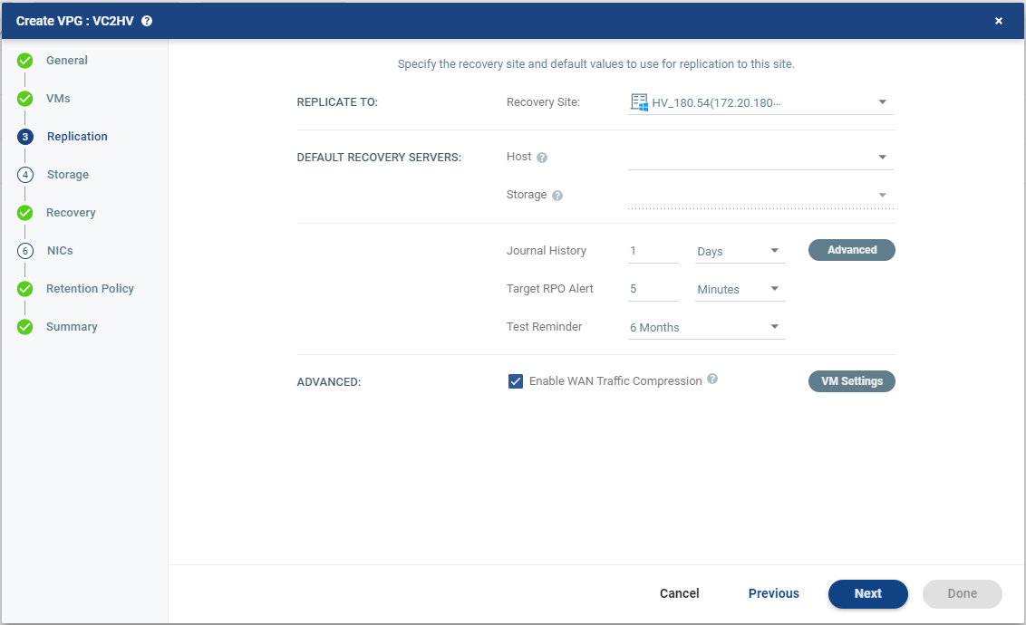| Note: | WAN Traffic Compression is enabled by default when replicating to vCD. |